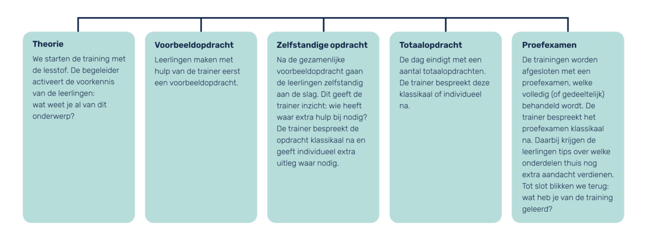 Onze examentrainingen zijn het hele jaar door beschikbaar, met extra aanbod in de weekenden en tijdens schoolvakanties. Dit zorgt ervoor dat je kind een training kan volgen op een moment dat goed uitkomt, bijvoorbeeld vlak voor de examens of juist al eerder in het schooljaar voor extra voorbereiding. Klik hier om de beschikbare trainingen te bekijken.